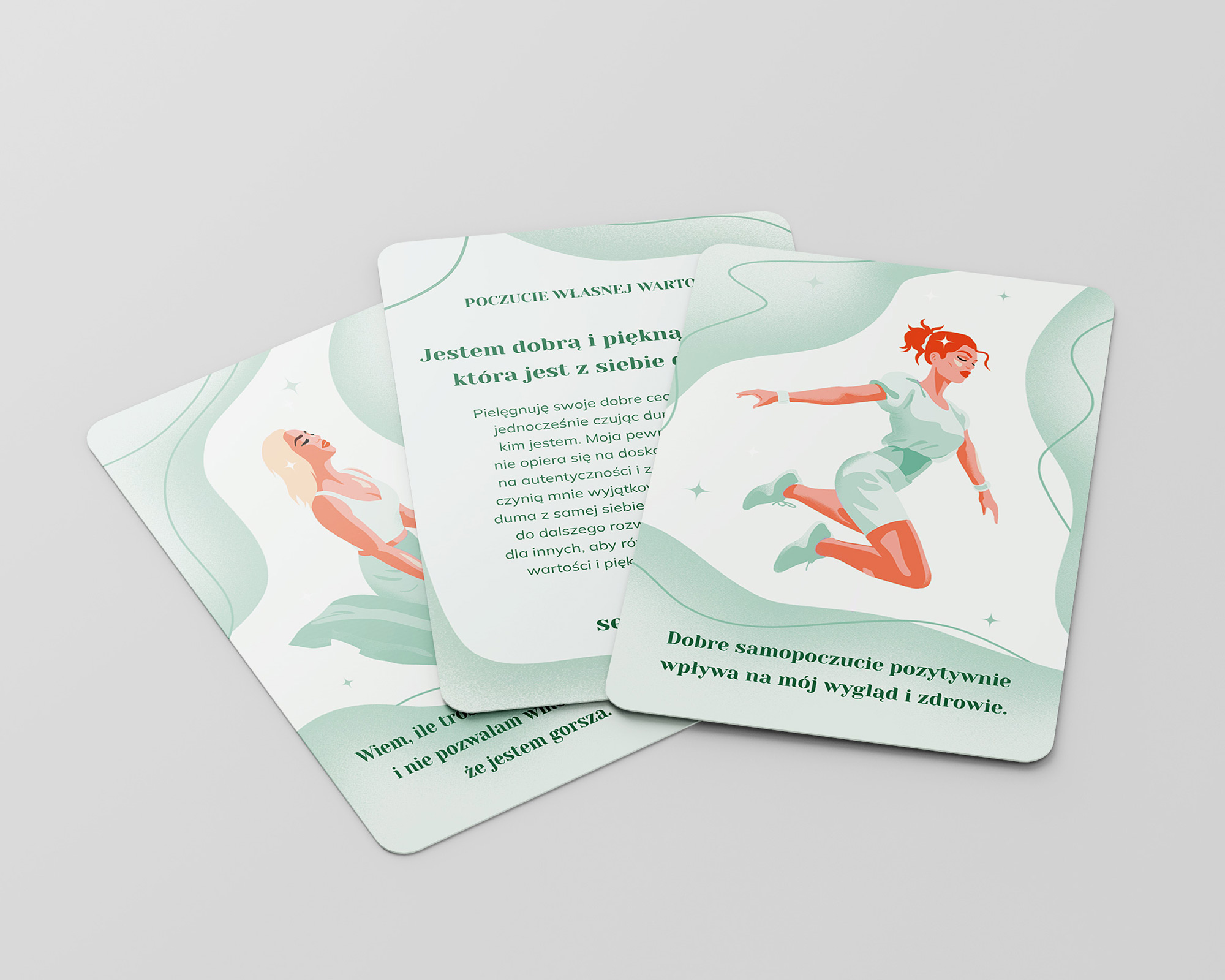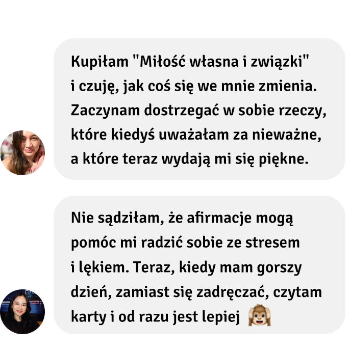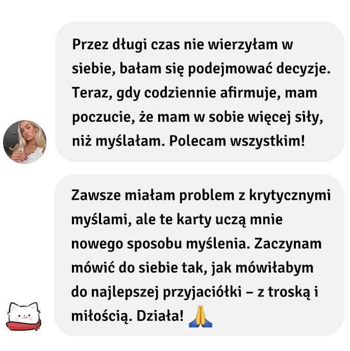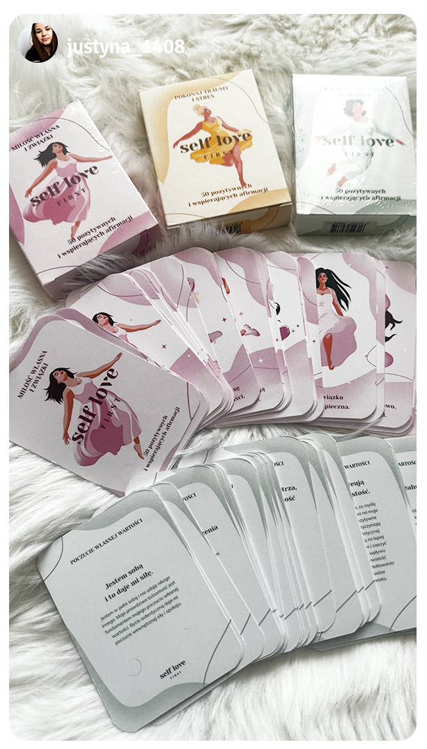 – na rewersach kart wytłumaczenie afirmacji, co czyni je jeszcze bardziej skutecznymi