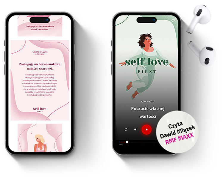 Słuchaj afirmacji i pozwól, by głos pełen ciepła wzmacniał Twoją podświadomość.