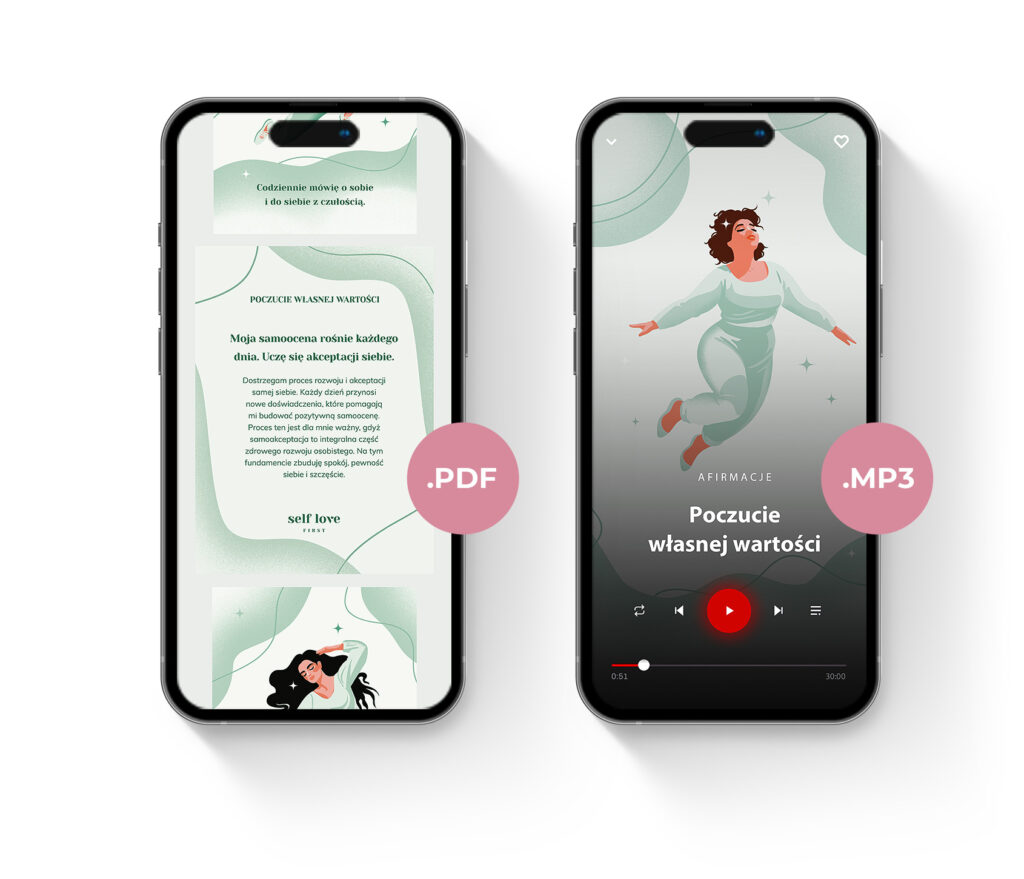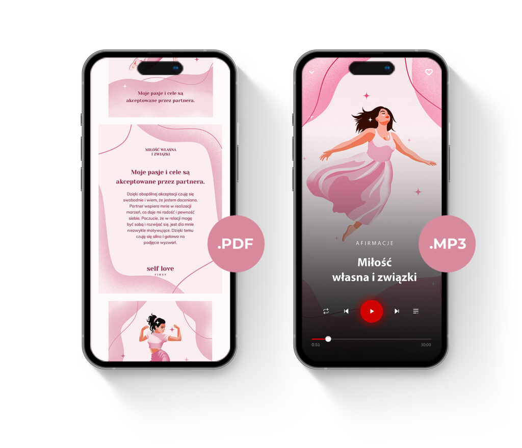 Zestaw kart w wersji cyfrowej (.PDF + .MP3) do afirmowania i słuchania w np. telefonie.