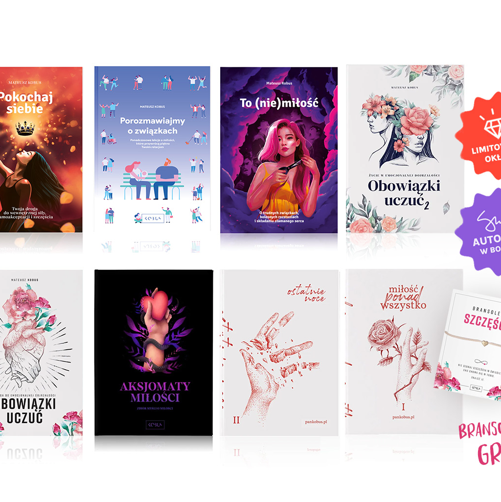 Pakiet wszystkich książek Pana Kobusa. Dodatkowo: niższa cena, autograf autora, bransoletka z serduszkiem w bonusie oraz 6 książek jest w limitowanej, kolekcjonerskiej wersji okładkowej!