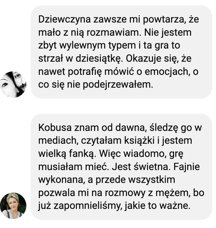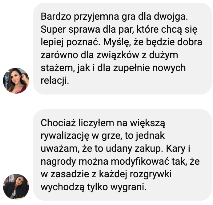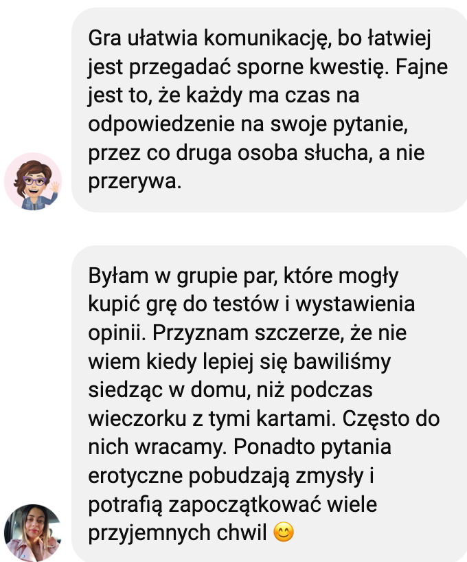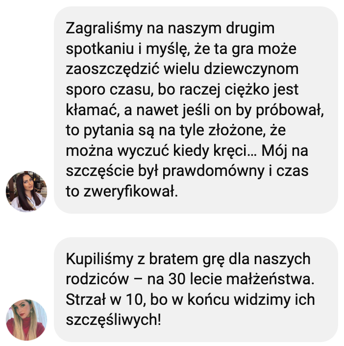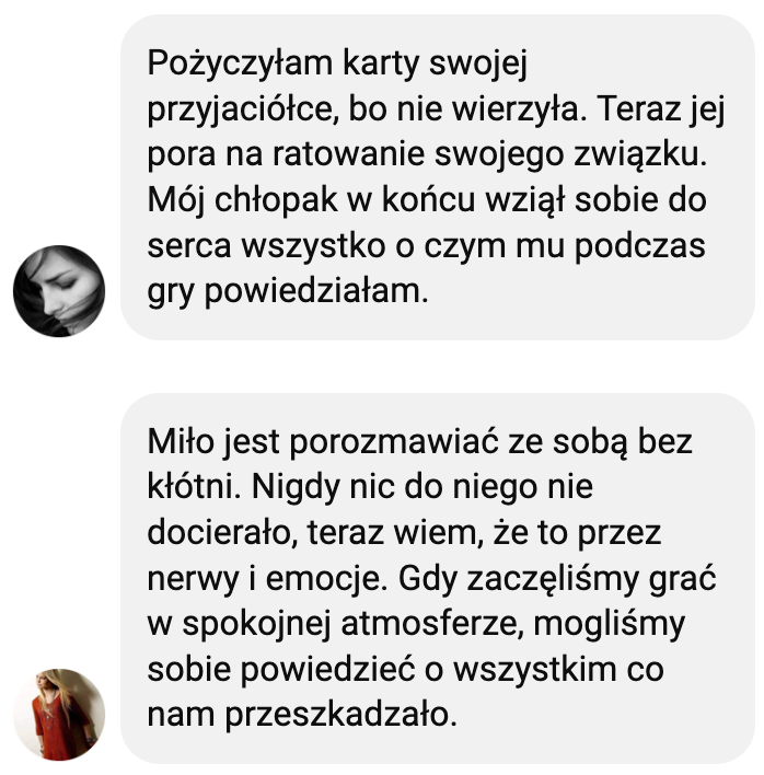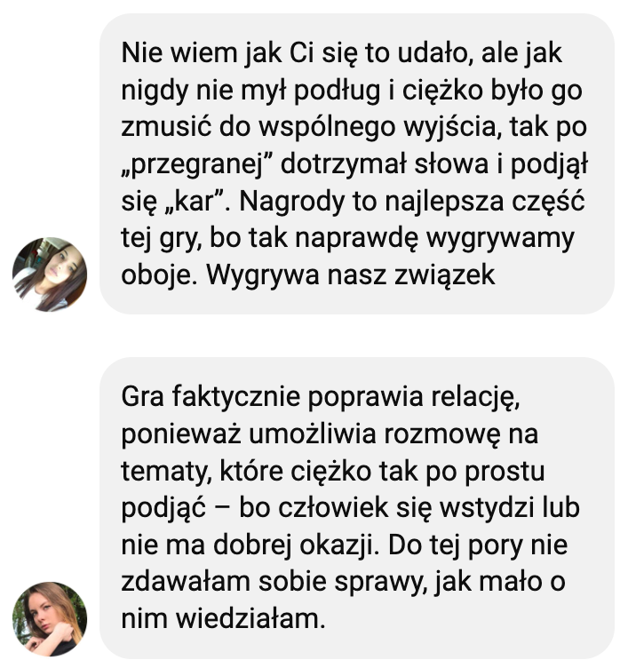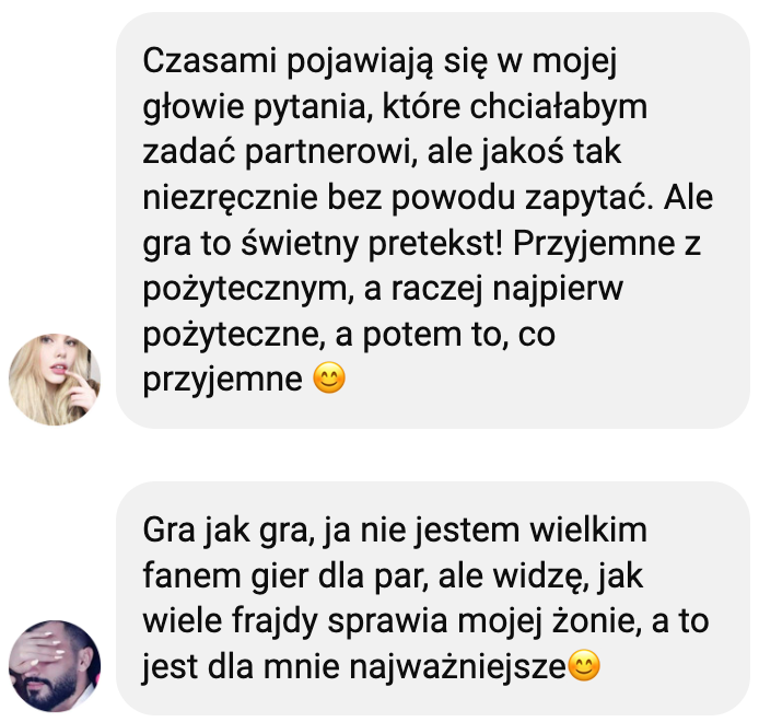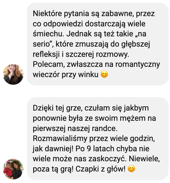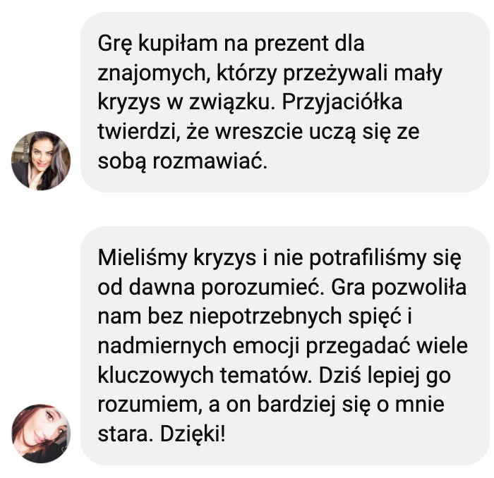 Grę dedykuję parom, które chcą przywrócić w relacji dawny żar i znów rozmawiać jak dawniej.