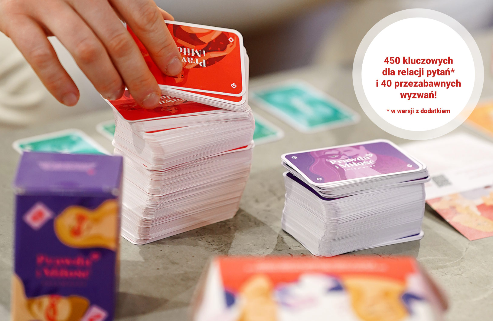 "Prawda i Miłość" to gra, która pomoże Wam odkryć nowe, fascynujące aspekty Waszej relacji. To zestaw 250 pytań (450 w wersji z dodatkiem), które pobudzą Waszą komunikację i wzajemne zrozumienie, a także umocni Waszą więź.