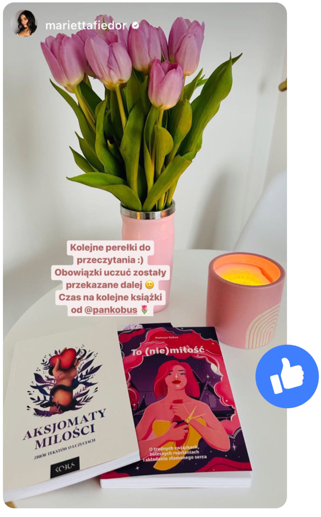 Mateusz Kobus – jeden z najpopularniejszych w Polsce autorów piszących o relacjach i miłości w mediach społecznościowych, na których skupia ponad 700 tysięcy czytelników. Od 13 lat działa na rzecz edukowania ludzi w budowaniu świadomych i szczęśliwych relacji z partnerem.